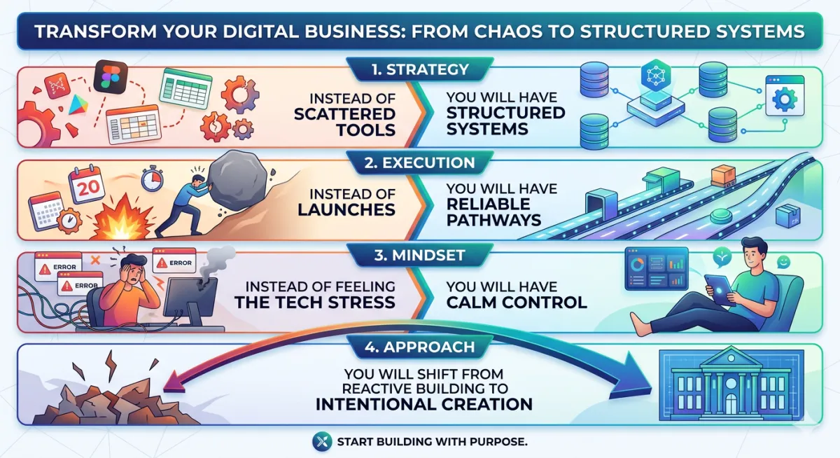 For conscious coaches, healers, and online course creators that desire to uplift the world and are ready to replace scattered tools with structured, sustainable infrastructure that feels aligned to you and your clients.